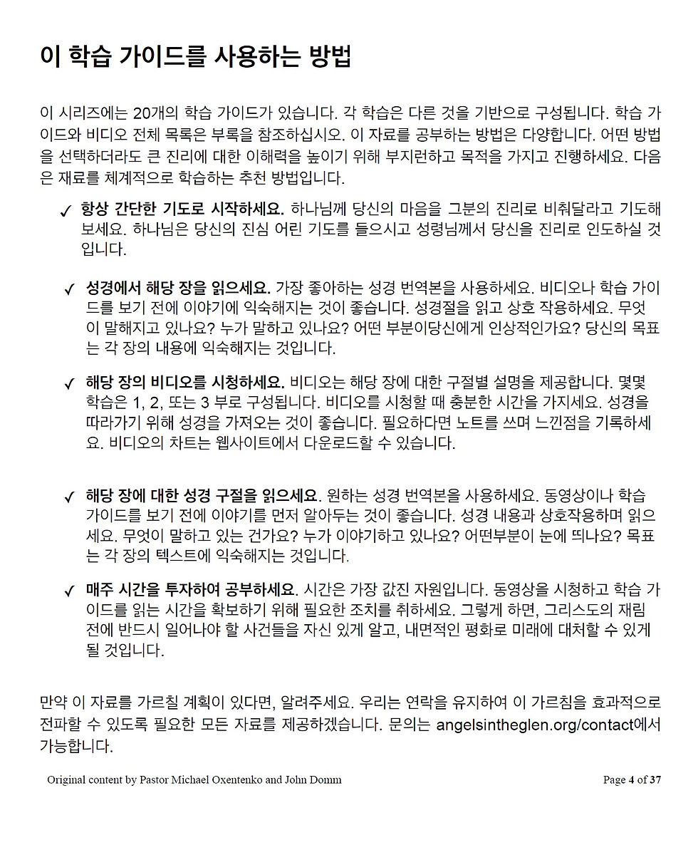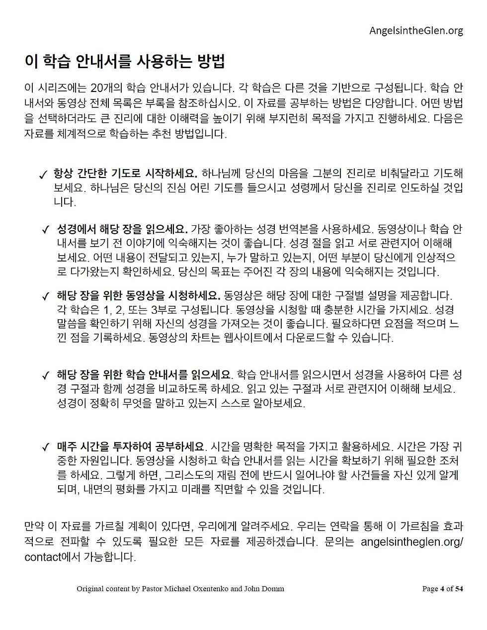 사용 관련 안내: 이 차트와 학습 안내서는 개인 성경 공부, 소규모 그룹 스터디 또는 다른 대규모 교육 포럼에서 사용하기 위한 것입니다. 각 차트/역사 연표에 해당하는 비디오를 시청하여 완전히 이해하고 문맥에 맞게 가르칠 수 있도록 해주십시오. 공개적인 프레젠테이션에서는 Angels in the Glen의 로고를 슬라이드에 유지하여 우리에게 크레딧을 부여해 주시기를 부탁드립니다. 귀하의 기여는 직접 이 사역에 반영되며, 이러한 가르침을 보급하는 데 사용됩니다.